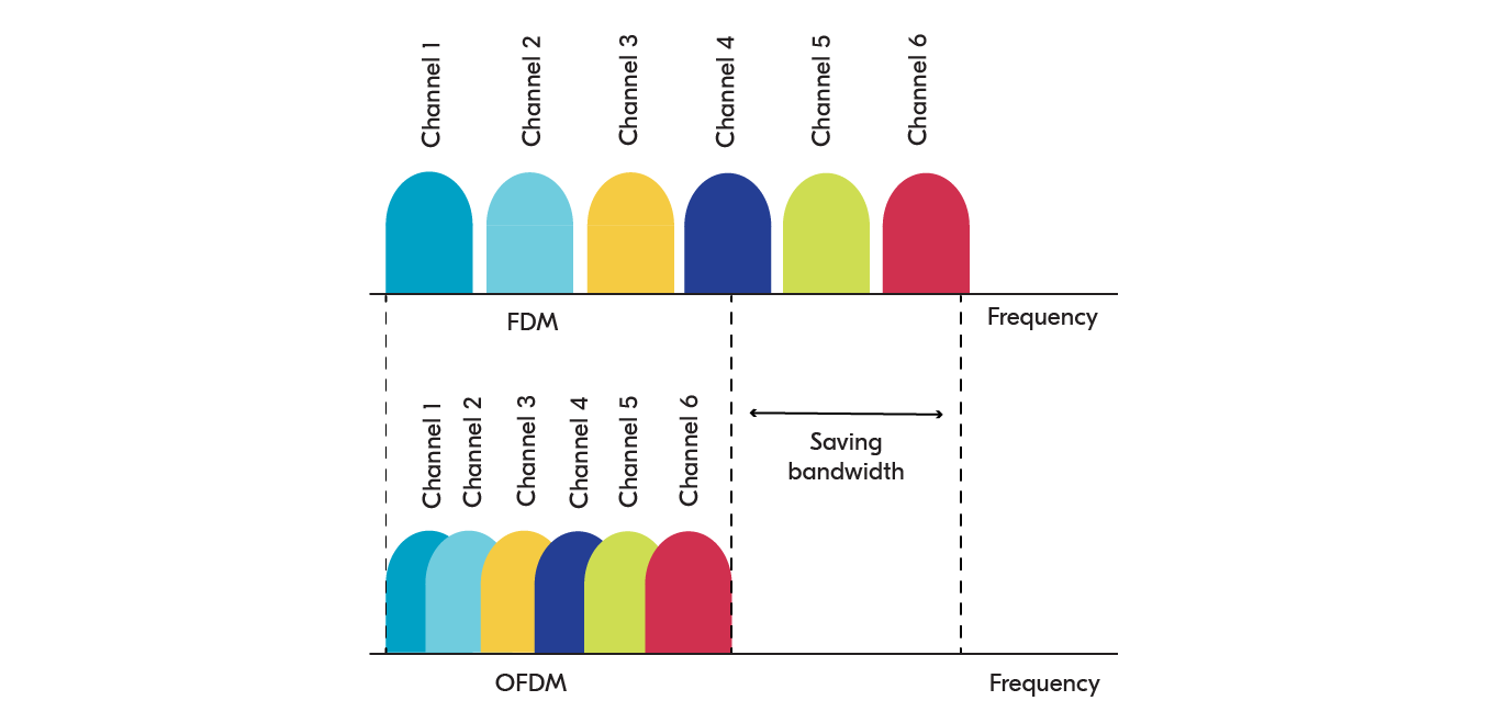 그림 3. 전통적인 채널 분할 방식과 비교한 OFDM