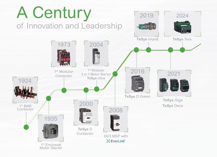 슈나이더 일렉트릭은 모터를 보호하고 공정의 안정성과 효율성을 높일 수 있는 테시스(TeSys) 라인업과 더불어 다양한 디지털 모터 관리 솔루션을 시장에 선보이고 있다. 올해로 출시 100주년을 맞은 테시스는 1924년, 전기 회로를 반복적으로 켜고 끄는데 사용되는 전기 제어 장치인 바 마운트 전자 접촉기를 세계 최초로 개발하며 역사가 시작됐다. 현재는 다양한 규모의 현장에 적용 가능한 테시스 아일랜드(TeSys Island), 테시스 기가(TeSys GIGA) 등의 라인업을 제공하고 있다.
