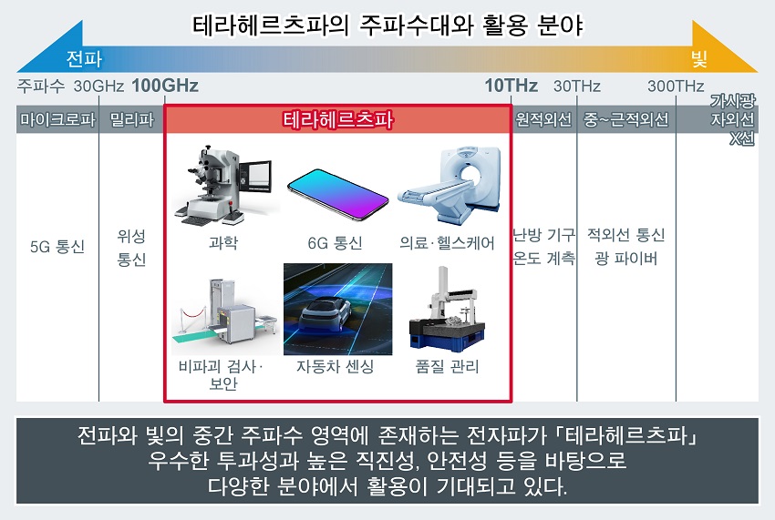 테라헤르츠파는 비파괴 검사, 의료 및 헬스케어 분야에서의 이미징 및 센싱뿐만 아니라, 향후 초고속 통신 기술에 대한 응용이 기대를 모으고 있다.