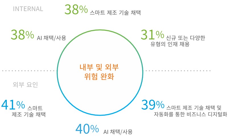 디지털 트윈, 시뮬레이션 툴, 생성형·인과관계 AI 등 신기술에 대한 투자도 활발히 진행 중이다. 전체 응답자의 36%가 생성형 AI(Generative AI) 또는 인과관계 AI(Causal AI)에 투자할 계획이며, 35%가 디지털 트윈 및 시뮬레이션 툴을 모색하고 있다고 밝혔다.