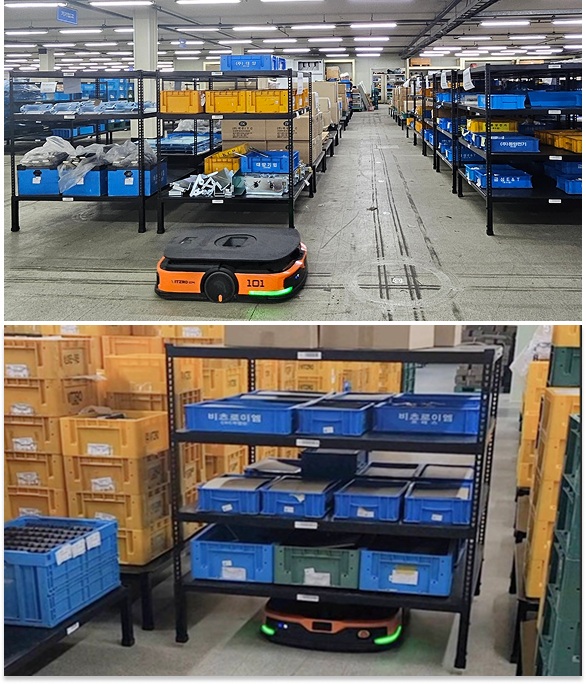 AGV·표준화 박스·선반 활용한 제조 물류 자동화 솔루션...-자동창고 대비 50% 비용으로 구축 가능