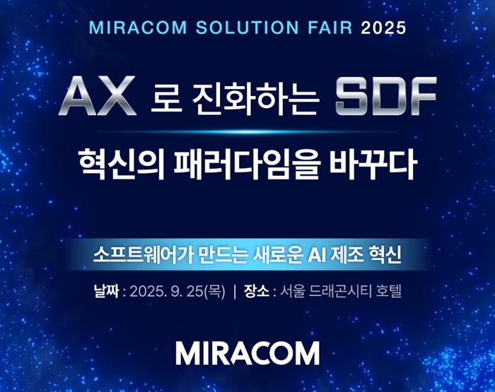 이렇듯 AX를 핵심으로 한 SDF가 새로운 제조 혁신의 패러다임으로 부상하는 가운데, 미라콤아이앤씨는 이번 행사에서 자사의 AI 기반 제조 플랫폼과 SDF 구현을 위한 전략적 로드맵 및 기술 비전을 공개할 예정이다. 행사에 참석한 제조 기업들은 SDF 실현을 위한 AI 전환 전략과 제조 경쟁력 강화에 대해 실질적인 도움을 받을 것으로 기대된다.