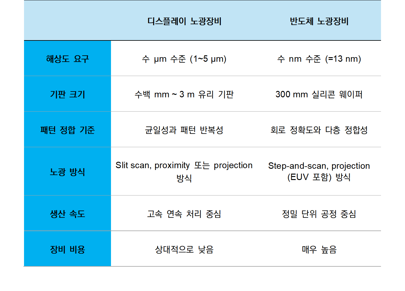 2. 디스플레이 vs 반도체 노광장비: 기술적 차이점