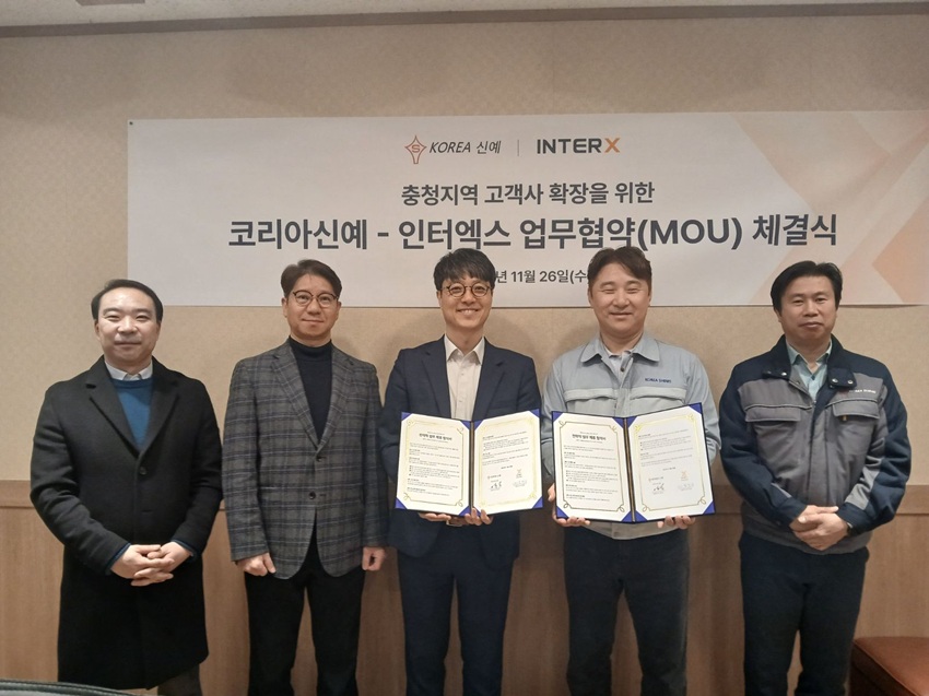 인터엑스는 25년 11월 26일(수), 코리아신예(대표: 이효성)와 EAX 솔루션 확산 및 AI 자율제조 공정 구축 협력을 위한 전략적 업무 제휴(MOU)를 체결했다고 밝혔다.