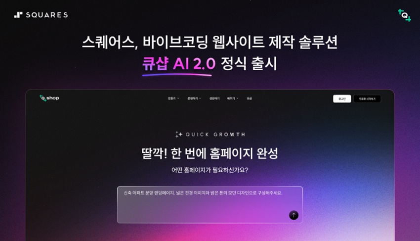 스퀘어스(대표 고진우)는 바이브코딩 웹사이트 제작 솔루션 ‘큐샵 AI 2.0’을 정식 출시했다고 12월 1일 밝혔다.