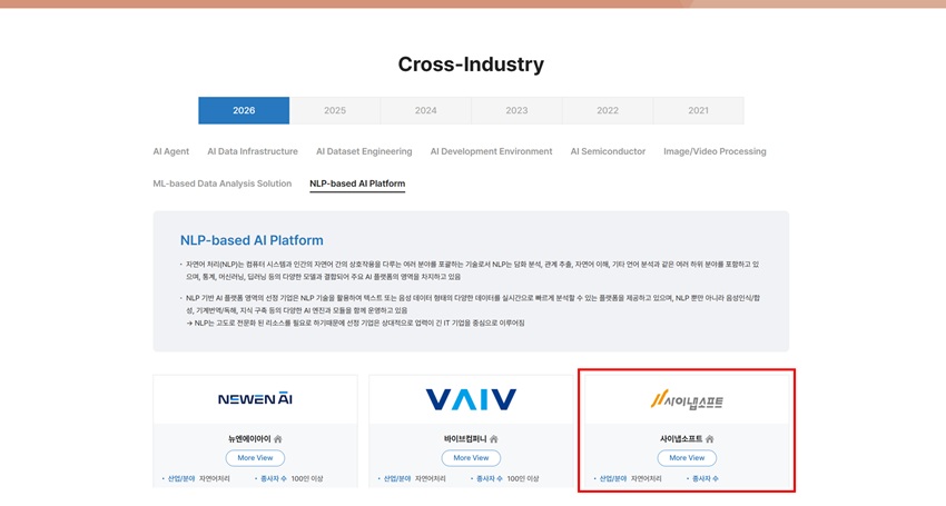 사이냅소프트 전경헌 대표는 “이번 2년 연속 선정은 사이냅소프트가 AI 시장 전반에서 실제적인 AI 솔루션을 제공해 온 결과”라며, “앞으로도 사이냅소프트의 다양한 AI솔루션과 서비스들로 기관과 기업의 AI 도입 장벽을 낮추는 기술 개발에 매진하겠다”라고 밝혔다.