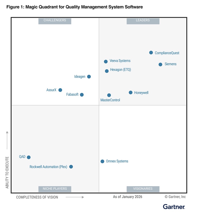 가트너는 규제 준수, 위험 관리, 공정 개선 등 기업의 품질 관리 요구사항을 충족하는 포괄적인 QMS를 제공하는 기업을 리더로 정의하고 있다. 이번 평가에서 지멘스는 비전 완성도와 실행력 측면에서 높은 평가를 받았다.