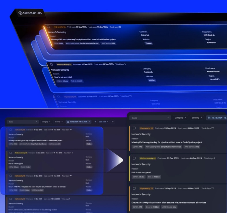 그룹아이비의 클라우드 보안 상태 관리 솔루션은 클라우드 오설정 자동 탐지 및 수정, 글로벌 규제 프레임워크에 따른 지속적인 규정 준수 모니터링 및 보고 뿐만 아니라, 그룹아이비의 업계 선도적 위협 인텔리전스를 기반으로 실제 노출 위험도에 따른 우선순위화된 인사이트를 제공한다. 또한, CI/CD(지속적 통합 및 지속적 배포) 파이프라인 전반에 걸친 보안 감독 기능을 제공하여, 배포 전 클라우드 애플리케이션이 보호되도록 보장하며, 위험 인사이트를 연계하여 더 빠르고 효과적인 의사 결정을 지원하는 통합 플랫폼 환경 내에서 모든 기능을 제공한다는 설명이다.