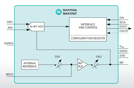 Maxim Integrated는 업계 최소 바이폴라 ±5 V, 16비트 아날로그디지털 컨버터(ADC)를 출시했다. MAX11166와 MAX11167은 소형의 9 mm2 패키지로 제공되며, 버퍼와 내부 레퍼런스를 통합한 12핀 16비트 바이폴라 ADC 제품이다. 이 고집적 ADC 제품은 Beyond-the-Rails™ 기술을 채택해 단일 +5 V 레일로 ±5 V 입력 신호를 지원할 수 있다. 따라서 음의 전원이 필요하지 않고 시스템 디자인을 간소화할 수 있다. 또한 500 ksps일 때 19.5 mW를 소비하고, 셧다운 모드 시 1 mA를 소비해 데이터 포착 시스템(DAS), 산업 제어 시스템/프로세스 제어, 의료용 장비, 자동화 테스트 장비(ATE) 등 정밀한 측정이 필요한 애플리케이션에 이용하기 적합하다. MAX11166 및 MAX11167은 2.5 V, 3 V, 3.3 V, 5 V 로직을 이용해서 SPI 호환 직렬 인터페이스를 통해 통신하며 샘플 레이트는 각각 500 ksps 및 250 ksps이다. 멀티채널 동시 샘플링 애플리케이션에서는 이 직렬 인터페이스를 이용해서 다중의 ADC를 데이지 체인으로 연결할 수 있다. 또한 이 직렬 인터페이스는 ‘busy’ 표시기 옵션을 제공해 시스템 동기화 및 타이밍을 간소화할 수 있다. 한편 새로운 고집적 ADC는 12핀 패키지(3 mm x 3 mm TDFN)로 제공되며 -40 °C ~ +85 °C 온도범위로 동작한다. 이들 제품의 확장 버전인 18비트 분해능 제품은 2013년 상반기에 출시할 예정이다.