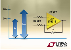 리니어 테크놀로지 코리아(대표 홍사곽)는 입력 범위가 폭넓은 듀얼 및 쿼드식 연산 증폭기 (제품명: LT6016 & LT6017) 2종을 출시한다고 밝혔다. 이 제품들은 LTC의 독자적인 오버더톱(Over-the-Top®)아키텍처의 견고성과 기능성이 고정밀 성능에 결합되었다. 입력 오프셋 전압은 최대 50µV이며, 입력 바이어스 전류는 5nA, 저 주파수 잡음은 0.5µVP-이다. 이러한 특징들을 통해 이번 신제품들은 정밀용 산업, 자동차, 계측 등 광범위한 범위의 애플리케이션에서 이상적이다.오버더톱 입력특성은 입력핀의 전압이 V+레일 이상일 경우에도 잘 동작한다. LT6016/LT6017 은 입력핀의 전압이 V- 전압 보다 최대 76V 높거나 V+가 3 ~ 50V 일 때 정상 동작한다. 추가적인 오류 보호 기능들은 역 전압 인가 조건 (V+핀에 최대 -50V), 네거티브 과도응답 (VIN핀에 최대 -25V), 공급 전력이 없을 때(VOUT핀에 최대 50V) 강제 출력 전압으로부터 연산 증폭기를 보호한다. 이 견고한 아키텍처는 증폭기 아날로그 인터페이스에서 다른 보드에 있는 애플리케이션에서 특히 유용하며, 하이사이드 및 로우사이드 전류 센싱에서도 유용하다.
