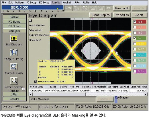 - RJ/DJ 분리, 아이 다이어그램, 아이 마스크, BER 컨투어, 자동화된 지터 허용오차, 패턴 캡처를 통해 BER, BERT Scan, TJ 측정