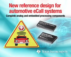 TI(대표이사 켄트 전)는 오토모티브 응급 호출 (eCall) 시스템에 필요한 모든 아날로그 임베디드 프로세싱 통합 회로(IC)를 제공하는 완전한 레퍼런스 디자인을 공개한다고 밝혔다. eCall 시스템이 장착된 차량은 사고가 발생하면 응급 서비스 센터에 자동으로 전화를 걸도록 되어 있다. 고객들은 AEC-Q100 인증 아날로그 IC로 구성된 TI의 레퍼런스 솔루션을 통해 eCall 시스템 설계를 가속화 할 수 있다.