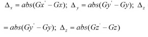 여기에서 min x,y,z와 max x,y,z는 정수 LSB(최하위 비트) 단위이며 풀 스케일 범위에 대한 수치이다.