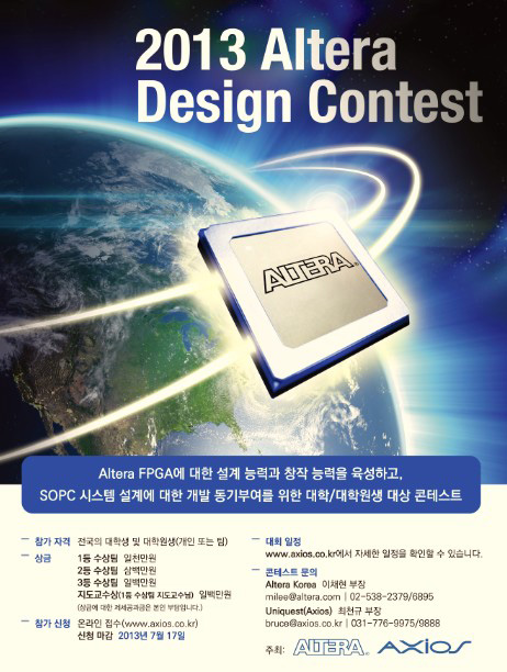 이 콘테스트는 Altera Korea와 Altera의 공급 파트너사인 Axios가 공동으로 주최한다.