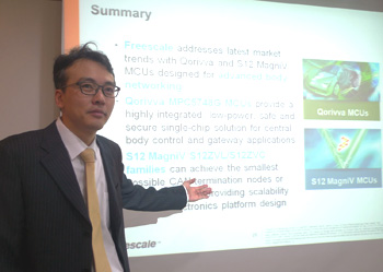 마이크로컨트롤러 및 디지털 네트워킹 프로세서 분야의 선두업체 프리스케일 반도체(한국 지사장 황연호, 이하 프리스케일)가 7일, 서울 잠실에 위치한 프리스케일 코리아에서 신제품 설명회를 열고, 자동차 바디 네트워크용 마이크로컨트롤러(MCU) 제품군인 쿼리바(Qorivva)와 S12 매그니비(MagniV) 포트폴리오 신제품 3종을 선보였다.