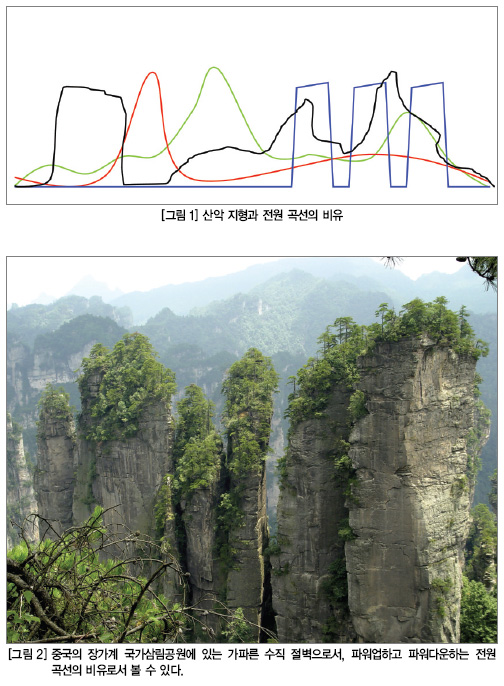먼저 비유로서 이 글을 시작해 보려고 한다. 그림 1에서는 우리가 산을 오르내릴 때의 산악 지형을 각기 다른 색상의 선으로 보여주고 있다.
