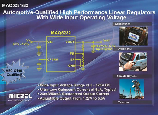 마이크렐, 가장 넓은 입력 동작전압 범위를 제공하는 2종의 자동차 등급의 고성능 리니어 레귤레이터 출시