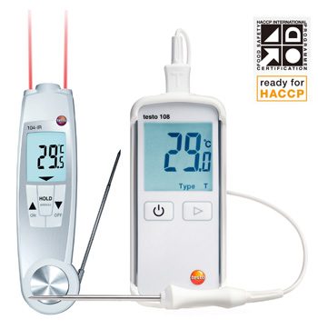 testo 104-IR과 testo 108은 온도계, 온습도계, 풍속계, 압력계, 열화상 카메라, 연소가스분석기, 트랜스미터 등 세계적으로 유명한 독일 명품 측정기를 국내에 판매하고 있는 테스토 코리아(지사장: 이명식 www.testo.co.kr)가 자신 있게 내놓은 식품산업을 위한 식품용 온도계이다. HACCP International에서는 비식품 분야에서 식품 안전 모니터링의 국제 기준에 적합한 제품에만 마크를 발급하고 있는데, 테스토 온도계가 받음에 따라 온도계 분야에서 최초로 공식 인증을 받은 제품이 되었다.