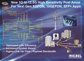 마이크렐 코리아(대표이사 오영준, www.micrel.com), 고성능 아날로그 및 고속 혼성신호를 비롯해 LAN, 타이밍 및 통신 솔루션 분야의 선도주자인 마이크렐은 포스트 제한 증폭기(Limiting Post Amplifiers)인 SY88053CL 및 SY88063CL을 출시했다. 이 디바이스는 차세대 PON 네트워크 구현을 지원하는 FTTH XGPON 및 10GEPON OLT(Optical Line Terminal) 애플리케이션에 이상적이며, 이더넷 및 광채널, OTN, CPRI/OBSAI 데이터 전송속도를 지원하는 최고 12.5Gbps의 멀티-레이트 애플리케이션을 위한 광 트랜시버 모듈에도 사용할 수 있다.(제품 샘플 및 가격 문의는 마이크렐 코리아 혹은 웹사이트 www.micrel.com에서 확인할 수 있다.)