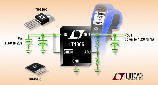 LT1965 H 등급은 -40°C ~ +150°C의 동작 접합 온도로 정격 되었으며 열 프로파일 (0.75mm) 8핀 DFN (3mm x 3mm) 패키지, 표면실장 DD-Pak 파워 패키지, TO-220 파워 패키지로 제공된다. 모든 디바이스는 현재 이용가능하며, 1,000개 수량 기준으로 개당 각각 2.80달러에서 시작한다. 상세 정보는 www.linear.com/product/LT1965에서 제공된다.