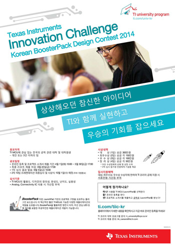“텍사스 인스트루먼트 이노베이션 챌린지: 코리안 부스터팩 디자인 콘테스트 2014” 대학(원)생들의 혁신적이고 참신한 아이디어 기대해