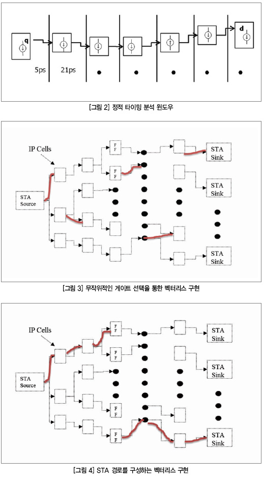 게이트 파이어링(gate firing) 시퀀싱은 정적 타이밍 분석(STA)의 타이밍 윈도우를 포함해야 한다(그림 2). 이 타이밍 윈도우는 게이트 고유 지연과 기생 지연을 모두 설명해 주는 보다 정확한 지연 시퀀싱을 제공한다.