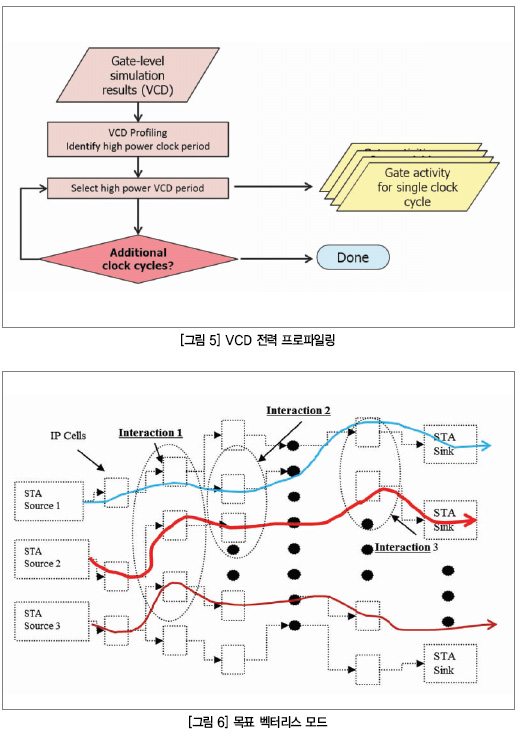 VCD 접근 방법의 단점은 주로 다양한 이유로 인해 데이터를 이용할 수 없는 데 따른 직접적인 결과다. 로직 시뮬레이션의 실행은 너무나도 많은 VCD 데이터를 생성한다. 따라서 이를 디스크에 기록하게 되면 시뮬레이션 실행시간이 크게 늘어나므로 VCD 데이터의 대부분은 일상적으로 폐기된다. VCD 데이터를 이용할 수 있다 해도 이 데이터는 대개 너무나도 늦게 도달하기 때문에 전력망 분석의 실행에 포함시킬 수 없다. 게다가 VCD 데이터 크기는 더욱 축소될 경우가 많은데, 이는 전력망을 충분히 강조하는(높은 전력 신호를 갖는) VCD 벡터들만이 유지되기 때문이다(그림 5). 그 최종 결과는 VCD 데이터의 커버리지가 잠재적인 전력망 문제들을 알아낼 수 있을 만큼 양호하지 않을 수도 있다는 것이다.