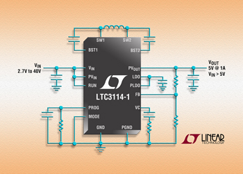 리니어 테크놀로지, 40VIN/OUT, 1A 동기식 벅 부스트 DC/DC 컨버터 출시