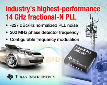 TI(대표 이사 켄트 전)는 첨단 주파수 변조를 이용해서 업계에서 가장 우수한 성능을 제공하는 14GHz 프렉셔널(fractional)-N PLLatinum® PLL(phased-locked loop) 제품인 LMX2492를 출시한다고 밝혔다. LMX2492는 비슷한 경쟁 제품 보다 6dB이상의 우수한 잡음 성능을 제공함으로써 향상된 RF(radio frequency) 감도와 레이더 거리 및 정확도를 달성할 수 있다.