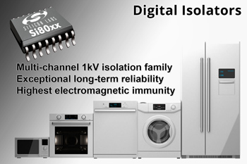 - 신제품 Si80xx 아이솔레이터, 멀티 채널 1 kV 기능적 절연이 필요한 가전기기 애플리케이션에 옵토커플러 능가하는 성능 제공 -