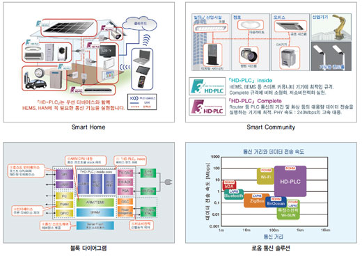 오늘날 모든 산업 분야에서 저전력에 대한 요구가 높아지고 있다. 이에 각종 인프라를 효율적으로 사용하기 위해 모니터링을 하고 제어,관리 시스템을 활용한 스마트 커뮤니티가 주목받고 있다. 기존 무선 통신용 제품은 보안이나 혼선으로 통신장애, 철근 콘크리트, 금속 프레임을 사용한 건축 환경하에서 통신 품질이 저하되는 약점이 있다. 하지만 로옴은 이런 약점을 보완하여 무선과 공존 관계를 구축할 수 있는 통신 수단으로 유선 전력선 네트워크를 활용한 HD-PLC에 주목해왔다.