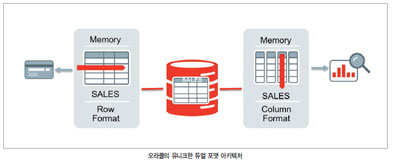오라클 데이터베이스 인메모리(Oracle Database In-Memory)는 대용량 분석과 데이터 웨어하우징 및 리포트를 처리할 수 있도록 고객의 데이터베이스 성능을 강화할 뿐 아니라 온라인트랜잭션프로세싱(이하 OLTP)의 속도를 향상한다. 또한 로우(row) 포맷과 컬럼(column) 포맷을 적절히 결합한 신개념 듀얼 포맷 인메모리 아키텍처를 통해 빠른 분석과 효율적인 OLTP를 동시에 제공한다. 기존의 모든 오라클 데이터베이스 호환 애플리케이션은 추가적인 프로그래밍 또는 애플리케이션 변경 없이 오라클 데이터베이스 인메모리의 기능으로 추가된 컬럼 기반 포맷을 활용한 인메모리 처리가 가능하다.