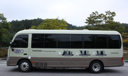 이 ‘체험 버스’는 초고속 풀컬러 프린터 ‘컴컬러(ComColor)’와 옵션으로 사용할 수 있는 ‘퍼펙트 바인더(Perfect Binder)’, ‘메일피니셔(Wrapping Envelope Finisher)’가 설치되어 있어 사용자들이 직접 버스에 올라 제품을 체험해 볼 수 있다.