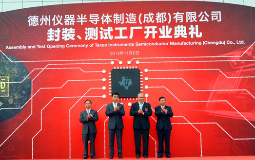 TI는 일곱번째 어셈블리/테스트(A/T) 설비의 준공식을 개최하고 곧바로 가동에 들어갈 예정이다. 면적이 358,000 평방피트(33,260m2)에 달하는 이 A/T 설비는 지난 2013년 12월 UTAC Chengdu Ltd.로부터 매입한 것으로 이제 첨단 QFN(Quad-Flat No-lead) 패키징 기술 설비를 갖추고 가동을 시작하게 된다.