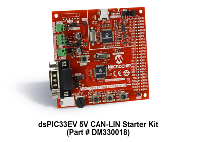 dsPIC33 "EV" 제품군은 마이크로칩의 dsPIC33EV 5V CAN-LIN 스타터 키트(부품번호 DM330018)에서 지원된다. 모터 제어 애플리케이션의 경우 새로운 dsPICEV256GM106 5V 모터 제어 플러그 인 모듈(부품번호 MA330036)을 사용하여 저전압 모터 제어 개발 번들(부품번호 DV330100)에 꽂을 수 있다.