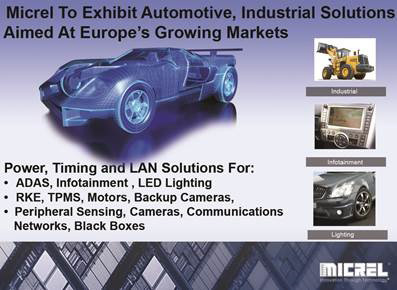 마이크렐 코리아(대표이사 오영준, www.micrel.com), 고성능 아날로그를 비롯해 고속 혼성신호 및 LAN, 타이밍, 통신 솔루션 분야의 업계 선도주자인 마이크렐은 빠르게 성장하고 있는 산업 및 자동차 마켓을 위해 다양한 첨단 IC 솔루션을 공급하고 있다.