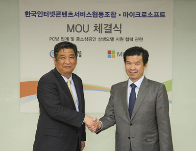 한국마이크로소프트는 오늘 여의도 중소기업중앙회 중회의실에서 한국인터넷콘텐츠서비스협동조합과 PC방 소상공인 지원을 위한 상호양해각서(MOU)를 체결했다.