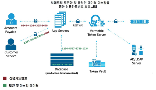 o 더 세분화되고 유연한 보안. 관리자들은 애플리케이션의 변동 없이 정책을 기반으로 필드 전체를 토큰화 하거나 또는 필드의 일부만을 동적으로 마스킹 할 수 있다. 예를 들어, 고객 서비스 팀의 경우 신용카드 번호나 주민등록번호의 일부를 가린 (마스킹 한) 정보만 볼 수 있도록 통제가 가능하다.