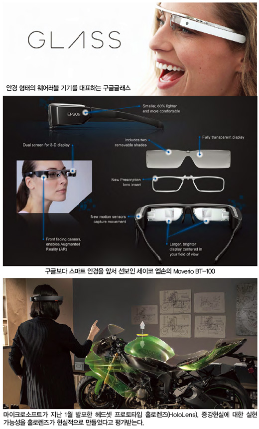 많은 사람들이 웨어러블 기기와 인터넷 혁명의 다음 단계로 사물인터넷(IoT)을 주목하고 있다. 세계적인 IT 기업들은 웨어러블 기술에 투자하고 매년 신제품을 선보이고 있다. 스마트 안경, 스마트 워치로 발화된 웨어러블 시장 경쟁이 올들어 더욱 뜨거워질 전망이다.
