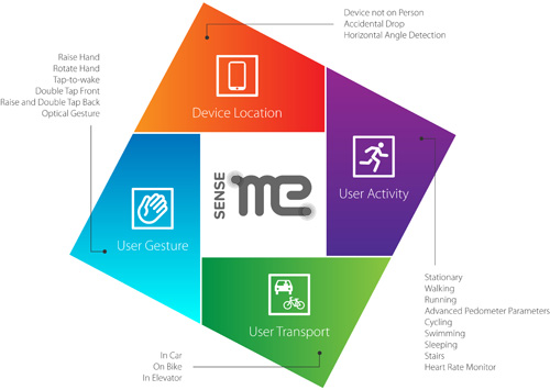 퀵로직의 SenseMe 알고리즘은 스마트폰 및 웨어러블 설계 팀이 사용자의 활동 상태와 컨텍스트를 정의하기 위해 관성센서, 자기센서, 생체센서, 근접센서, 광센서를 포함한 광범위한 센서로부터 수집한 데이터를 손쉽게 해석할 수 있게 해준다.