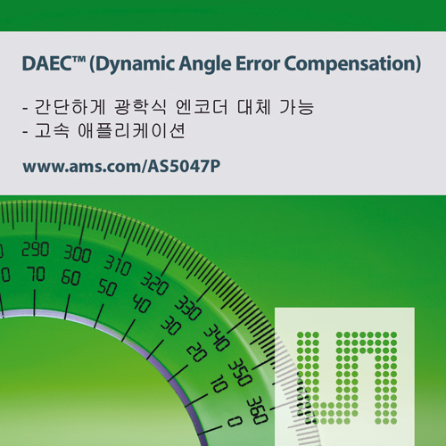 신제품 AS5047P은 47시리즈의 기존 제품들처럼, 회전 속도가 매우 빠르더라도 우수한 정밀도로 각도 측정을 실현하는 ams의 DAEC™ (dynamic angle error compensation) 기술이 적용되었다. 47시리즈 마그네틱 센서의 고속 성능과 ABI 증가분 방식의 출력은 광학식 엔코더를 완벽하게 대체할 수 있을 정도로 이상적이다. 47시리즈에 기반한 설계의 총 시스템 비용은 동급 광학식 엔코더(encoder)나 리졸버(resolver)를 사용할 때 보다도 훨씬 더 낮다.