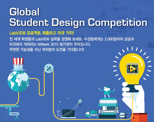 글로벌 스튜던트 디자인 경진대회 개최 내쇼날인스트루먼트는(이하 NI, ni.com/korea) 전 세계 공학도들과 LabVIEW 실력을 겨루는 ‘글로벌 스튜던트 디자인 경진대회(Global Student Design Competition, 이하 GSDC)’를 개최한다고 전했다. 본 공모전은 내쇼날인스트루먼트(미국 본사)에서 개최하며, 그래픽 기반 프로그래밍 언어인 LabVIEW 프로그래밍 실력을 전세계 학생들과 경합하는 경진 대회다.