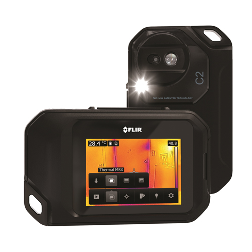 C2는 FLIR의 특허인 Lepton® 마이크로 열 디텍터를 사용하고 있으며 4,800 픽셀의 분해능으로 미세한 열 패턴과 온도 차이를 정확하게 검출하여 눈으로 확인할 수 있게 해준다. 렌즈는 광각, 고정 초점식으로서 건물진단에 필요한 넓은 면적을 동시에 검사할 수 있는 성능을 제공한다. 또한 조명용 작업등과 플래시를 내장하여 건물 내부의 어두운 곳에서도 불편함 없이 정상 작업이 가능하다.
