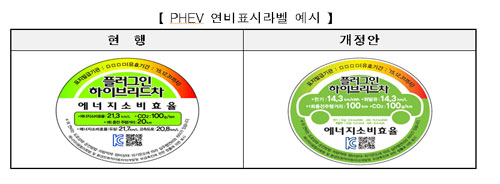 정부 (산업부, 환경부, 국토부 공동)가 플러그인 하이브리드차(車)*의 에너지소비효율과 관련하여 이를 측정하는 산정식을 정의하고 연비라벨을 전기와 유류로 구분해 고시에 반영한다.