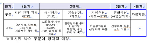 구체적으로 금년부터 기술담보융자의 경우, 사업심의회를 포함한 기존 절차에서(4단계) 사업심의회절차를 생략하여 기술보증기금의 평가만으로도 자금지원이 이루어지도록 절차가 간소화(3단계)된다.