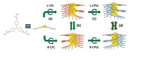 연구팀은 이 가설에 입각해 원편광의 키랄성이 비키랄성 분자에 전달 및 증폭이 가능한지 알아보기 위해 빛에 반응하는 비키랄성 분자를 이용했다.