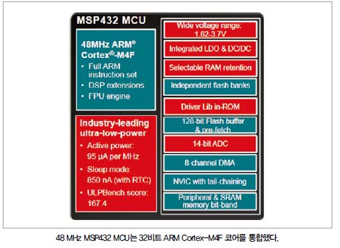 TI 코리아가 MSP430 계열로 저소비전력을 계승하면서 성능을 향상시킨 MSP432 MCU를 발표했다.