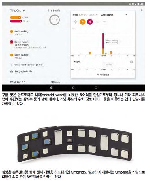 이플랫폼은 안드로이드웨어(Android wear)를 비롯한 웨어러블 단말기로부터 정보나 기타 피트니스 앱이 수집하는 심박수 등의 생체 데이터, 러닝 루트의 위치 정보 데이터 등을 이용하는 앱과 단말기를 개발할 수 있다.
