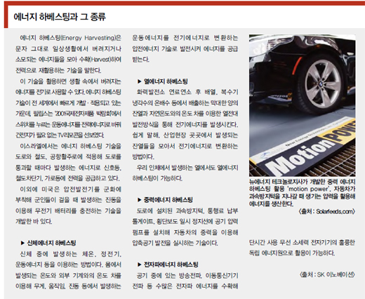 주변에는 풍부한 주변 에너지(ambient energy)가 존재한다. 전통적인 에너지 하베스팅 방법은 태양광 패널이나 풍력 발전기를 이용하는 것이었다.