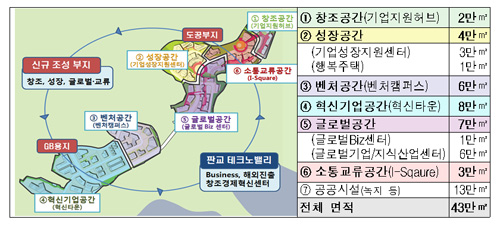 * 기업지원허브 : 부지 2만㎡에 연면적 9만㎡(3+1개동) 규모로 건립